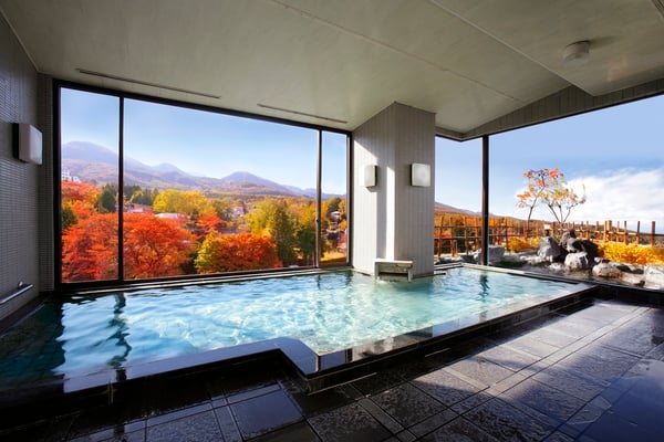 温泉施設では、2023年5月に男女入替制の大浴場「椿の湯」がオープン。温度が異なる3種類の湯船があるので、最初は熱めでその後に低めの湯にのんびり浸かるなど楽しみ方もアレンジ可能。露天風呂を併設した男湯と女湯の独立した大浴場からは伊香保が一望できるので、四季折々に魅せる景観を眺めながら美肌の湯をたっぷり満喫できます。