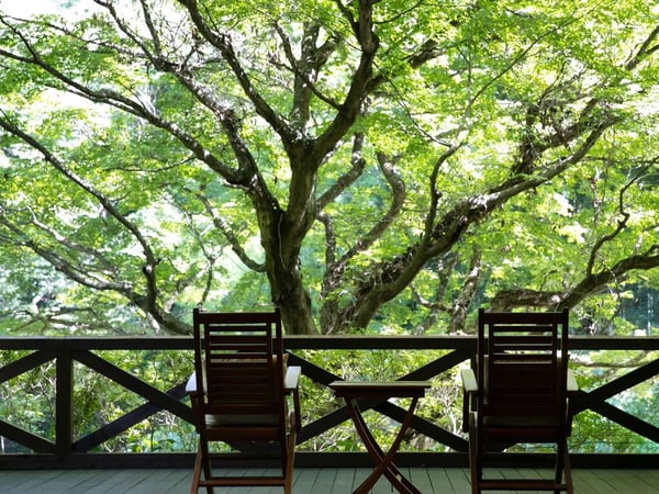 半露天風呂やデッキからは四季折々の渓谷美が、一枚の絵画のように広がります