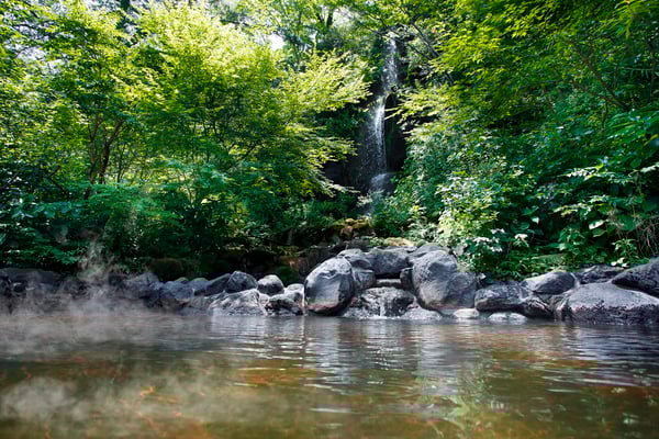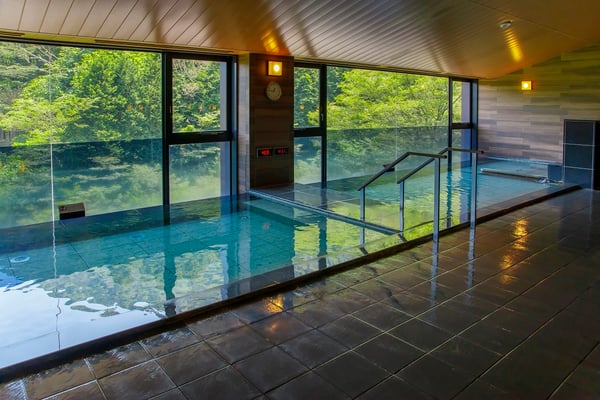 もう一方の大浴場「車沢の湯」では趣が一変。古くから親しまれてきた「呉坊の滝」を目の前に緑豊かな渓谷を望みながら静かな湯浴みを楽しめます。春の桜や秋の紅葉など四季折々の草木に囲まれ、小鳥のさえずりや清流のせせらぎが心地よく、心身ともにリラックスできます。