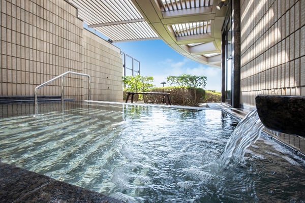 小田原温泉の源泉を地下からくみ上げた湯は、疲労回復や冷え性に効能があるとされるナトリウム―塩化物温泉。天然温泉大浴場には内湯と露天風呂があり、露天風呂は標高約183mの高台にあることから相模湾の絶景が遠くまで見渡せます。日中は海と山の贅沢な景色を、夜空はきらめく星を眺めながら、ゆったりと湯浴みを満喫しましょう。内湯には男女別のサウナと水風呂も 併設されています。