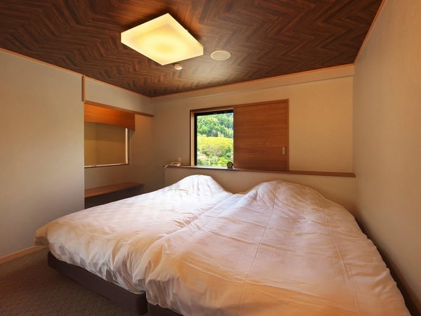 130cm幅のセミダブルベッドを2台並べたベッドルームもあります。