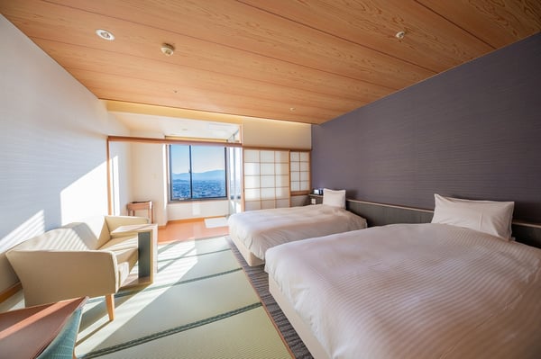 西の館「天覧」の最上階に用意した2人旅におすすめの温泉展望風呂付ツイン