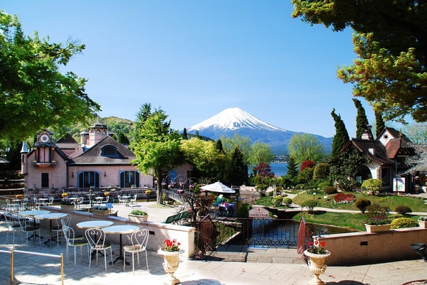「ハーブ庭園」までのアクセスは、河口湖駅から徒歩約25分、車で約10分。忍野八海からは約22分。
