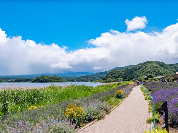 特に印象的だったのは、色とりどりの花々をめぐる花街道と、その向こうに堂々とそびえる富士山とのコラボ。思い出に残る写真が撮影できました。園内の河口湖自然生活館では、ブルーベリーの関連食品や富士山グッズの購入、ソフトクリームや軽食が味わえます。