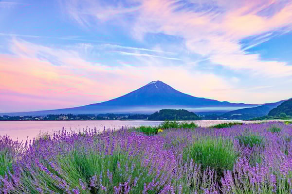 最初は、河口湖の北岸に位置する「大石公園」へ。四季折々の花々と富士山の絶景が同時に楽しめる絶好のフォトスポットです。春(4月下旬〜5月中旬)はチューリップや芝桜。夏(6月下旬〜7月中旬)はラベンダーと全長130mの巨大なベゴニアの滝。秋(8月〜10月)は真っ赤に紅葉するコキア。冬(11月〜翌年3月)は開花がないものの、富士山の稜線がクリアに見える絶好の撮影シーズンになります。