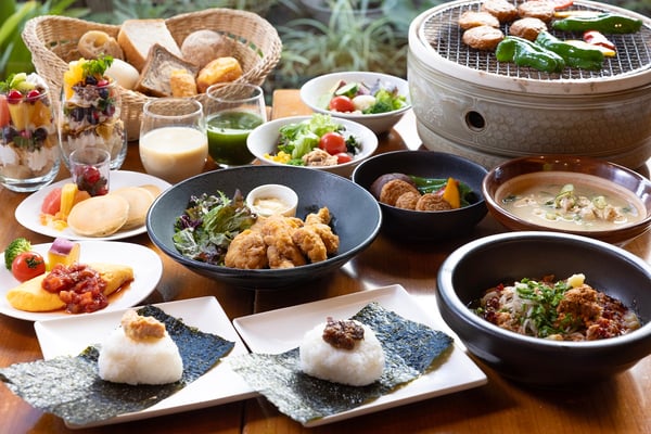 ホテルから屋外通路を歩いて、松林の中にある温泉施設「松泉宮[しょうせんきゅう]」へ。ここのお湯は1千万年前の地層から湧き出しているそうで、太古の海の化石成分がじんわり溶け出したという塩化物強塩泉のミネラル豊富な美人の湯といわれています。確かに入浴後はお肌がつるつるになりますよ。お風呂は露天風呂付浴場の前の湯「新月」のほか、露天風呂の奥の湯「月読」があり、松林と空を眺めて湯につかる露天風呂は格別です。貸切露天風呂「離れ湯」もありますよ。話題の小山薫堂氏提唱の“湯道”を体現した初の湯室「おゆのみや」も要チェック。色浴衣レンタルコーナーでお好きな浴衣をレンタルして、温泉へ繰り出しましょう。