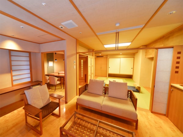 大切な家族のお祝いや仲のよい友人との記念日など、特別な宿泊をしたい場合は、3室限定の半露天風呂付き客室がおすすめです。ソファーやベッドを配したリゾート気分に溢れた洋室や上質な和の設えで統一された落ち着いた客室、和室とリビング・ダイニングを備えた和モダンの客室など、異なる個性が感じられるのも魅力のひとつ。24時間いつでも好きなタイミングで湯浴みが楽しめる露天風呂と16もの浴槽が揃う温泉施設でたっぷり名湯を満喫しましょう。