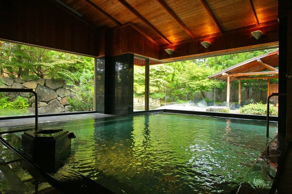 庭園を眼前で愛でながら、温泉に浸かり、心穏やかな時間を優雅に過ごす