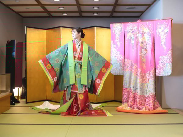 打掛の無料体験のほか、十二単の着用体験(有料・要予約)もあります