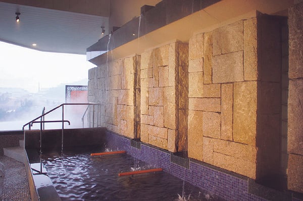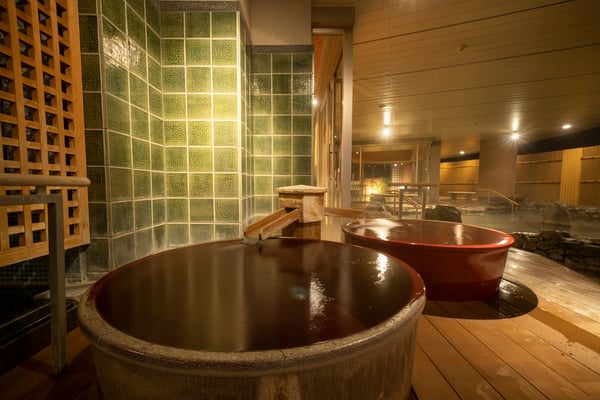 「天の湯」は、インフィニティープールように湯面の先に壮大な景色が広がる「石樋湯」、ほかではあまり見ない1人用の大きな壺風呂、樽風呂、打たせ湯などが屋外にあり、内湯はジャグジー付。最上階でしか味わえない爽快感が魅力です。