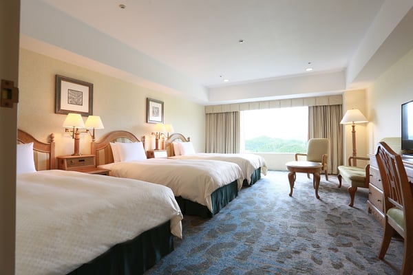 女子旅におすすめの客室は、デラックスツインとトリプルルーム。2つの客室ともに46㎡の広さがあり、デラックスツインは自然のやさしさと優雅な雰囲気が漂うリゾート感あふれる客室。