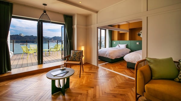 「お宿行灯鳥羽」は全26室がオーシャンビュー。カップルや女子旅に最適な6タイプの客室があります。すべての客室からは青く澄み切った空と紺碧の海がグラデーションのように広がり、眺めているだけで心が洗われ清々しい気持ちになります。