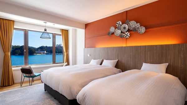 そのほかの客室タイプはカップルに最適なツインベッドルームがメイン。荷物を開いてもゆとりのある広さがあり、デラックスツインはクイーンサイズとシングルサイズのベッドが1台ずつあるので、夫婦と子どもの3名で宿泊するときにぴったり。クイーンサイズのベッドが1台の客室「最上階ダブル」はプチ贅沢な1人旅におすすめです。