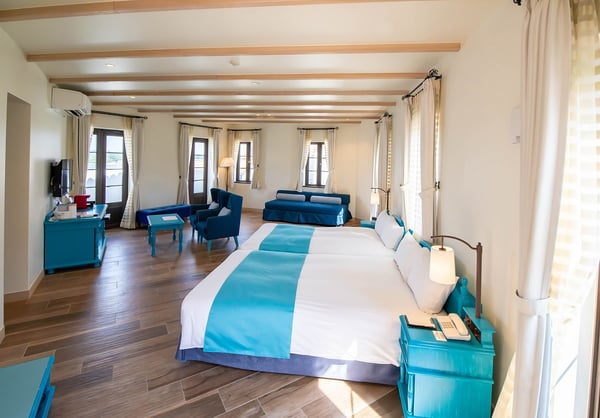 「志摩地中海村」の客室は、5つのゾーンの街並みに溶け込んだ家の中に全53室あります。2階建ての別荘風や一軒家スタイルのヴィラもあるのでカップルや夫婦、女子旅や家族などのグループで一緒に泊まれる多彩な客室から選ぶことができます。