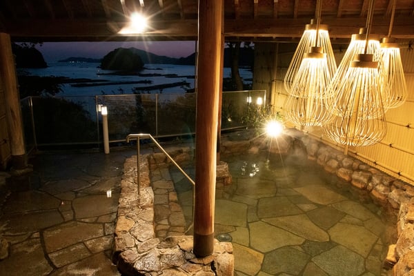 開放的な大きな湯船が特徴の露天風呂「海風(男湯)」