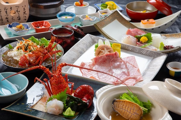 伊勢エビ・アワビ・松阪牛が揃った三大味覚会席は部屋食で(イメージ)