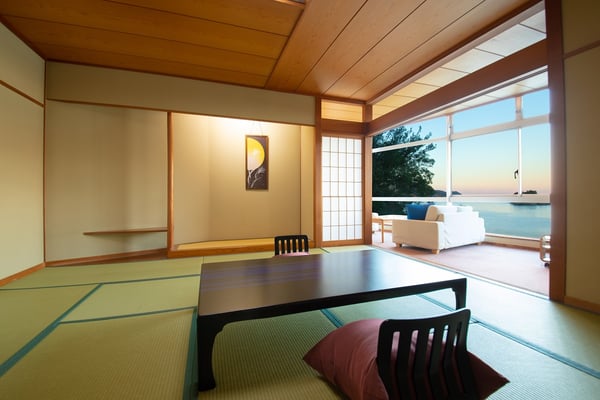 落ち着いた和の佇まいが心地よい12.5畳の一般客室「青い潮」(一例)