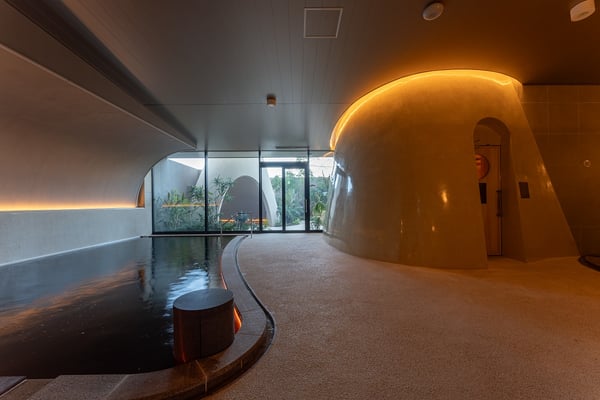 2つの大浴場は趣が異なり、「Sora/宙」は屋根付きの露天風呂や内湯、サウナはいずれも柔らかな曲線を描いたデザイン。「Daichi/大地」は直線的でシックな雰囲気が特徴です。サウナはどちらもロウリュの熱気と香りに包まれる本格的なフィンランド式で、水風呂と外気浴を組み合わせれば “ととのい”を体感する極上のリトリート時間が完成。日々の疲れを心身から解き放ち、新しい自分に出会える温泉とサウナで、特別な時間を堪能したいですね。