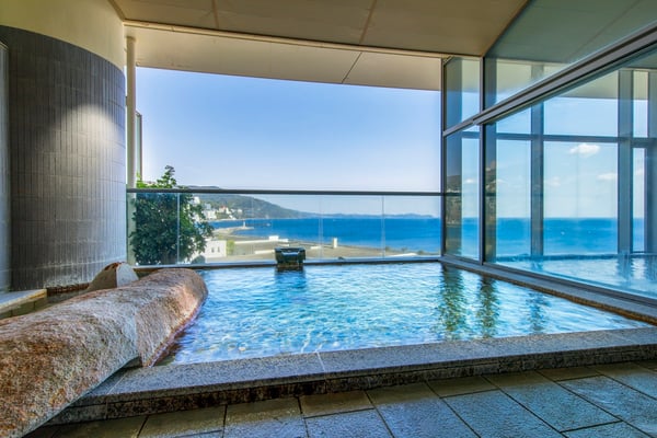 自家源泉を使用した、眺望が美しい大展望風呂「海望(うみ)の湯」