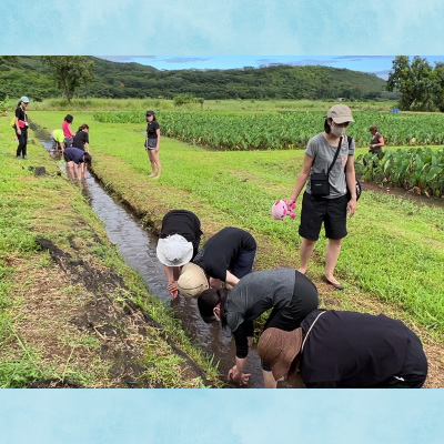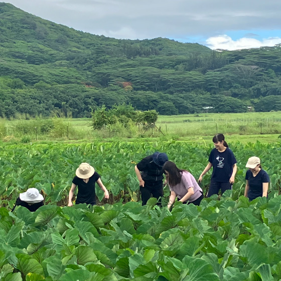 JTBでは社員研修でもマラマの取り組みを体験する機会を設けています。2022年は、タロイモ畑の雑草採りを体験。ハワイの伝統文化や美しい自然を守る活動体験に実際に参加することで、魅力を守り続けることの大切さ、歴史ある伝統文化を受け継ぎ続けることの尊さへの深い理解につながりました。