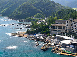 廊下までも畳敷きという新和風な館内。せせらぎが流れる中庭にはかがり火・能舞台の幻想的な演出があり、非日常的で優雅なひとときがそこにございます。夕食には郷土色と季節感を盛り込んだ本格会席をご堪能いただけます。外湯めぐり、又散歩には専用車で送迎もいたしております。全館無線LAN(Wi-Fi)、空気清浄機完備、外湯めぐりも無料。
