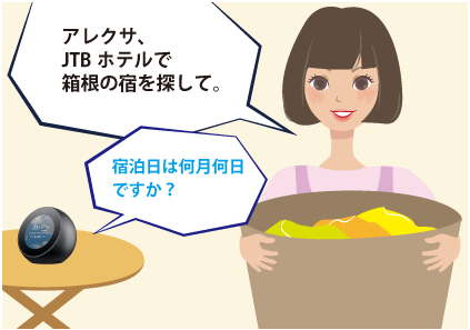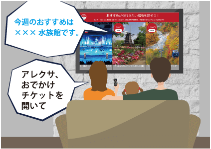 Fire TV シリーズのAlexa対応音声認識リモコンを使ってAlexaに話しかけるだけで、簡単にJTBのスキルをお楽しみいただけます。