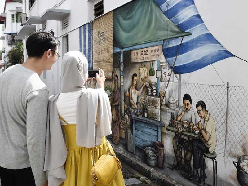 数多くのウォールアートが見られるおしゃれな小路「ハジレーン」を散策。 |
