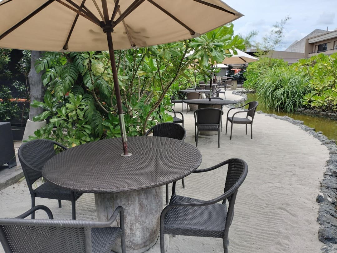 ココナッツの木や白砂が敷かれたラグーン風の屋外席と、涼しく快適なエアコン完備の室内席を完備。南国ならではの開放的な雰囲気の中でお食事をお楽しみいただけます。