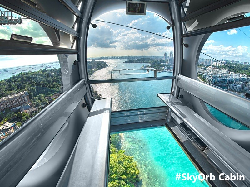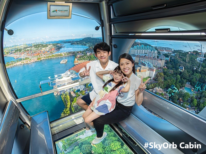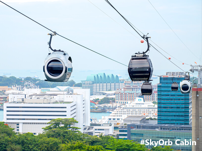 光に反射する近未来的なキャビンから眺めるシンガポールの絶景は、まさに忘れられないひとときです。