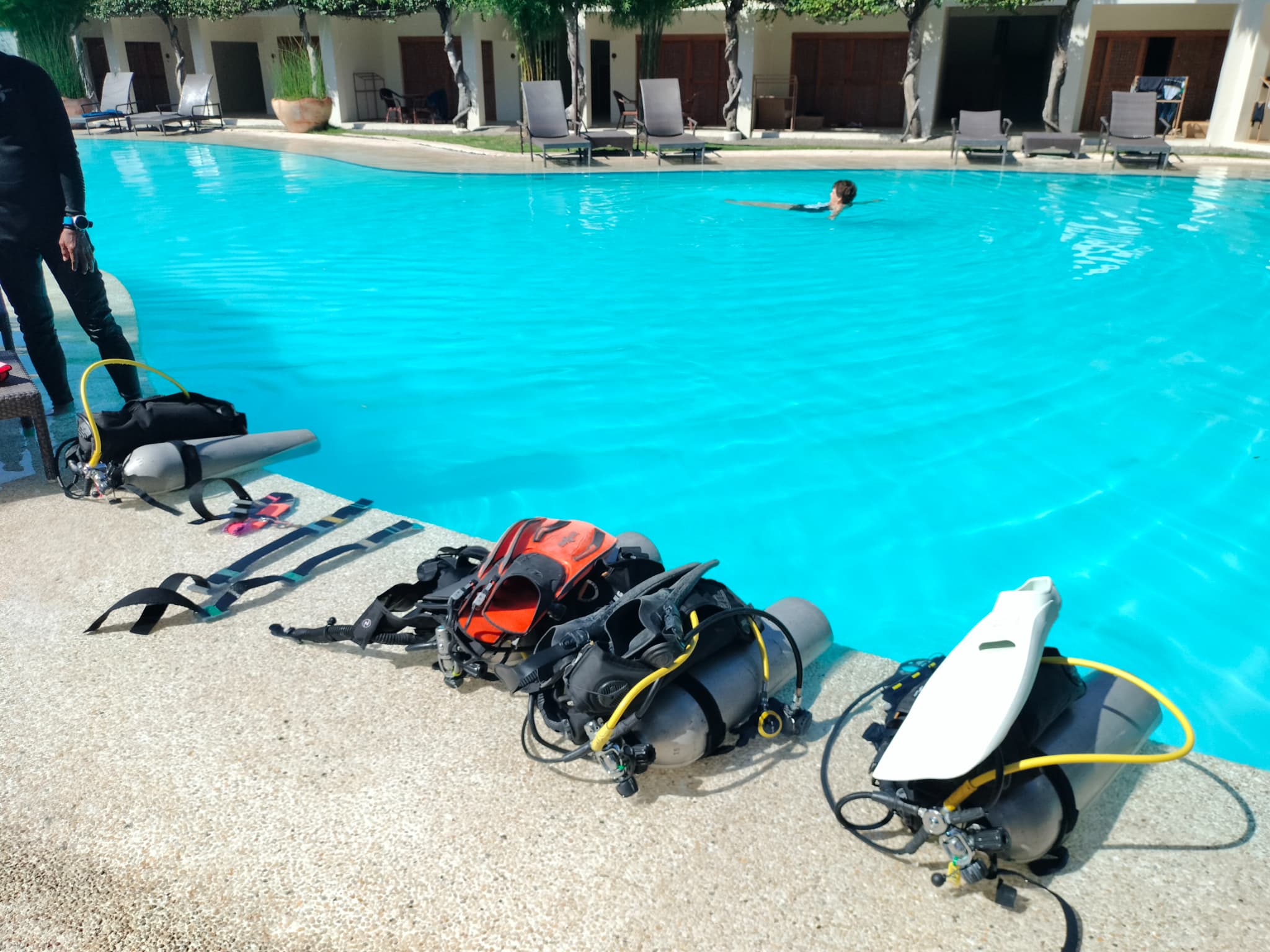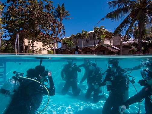 STEP4 限定水域ダイブ(プール講習) 昨日学んだ基本テクニックの復習と新たなスキルを習得します。 |