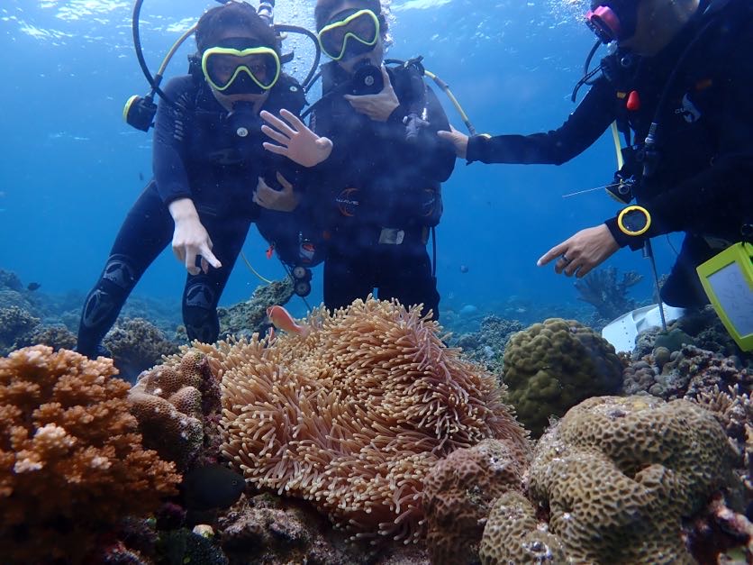 STEP1 eラーニング学科の復習 ダイビングショップ到着後、お申込書、体調チェック表に記入をいただきます。 その後、日本で済ませたeラーニング学科の復習確認小テストを行い答え合わせ。学科時に疑問に思っていることなどはこの時にお尋ねください。 |