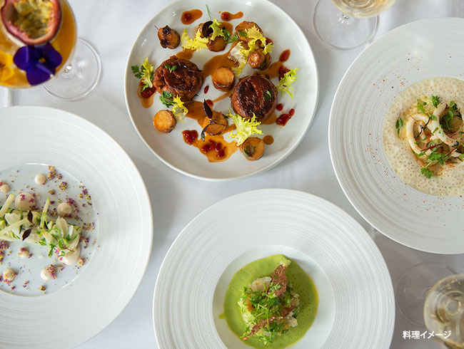 【メニュー 一例】 ※25年10月現在 前菜: 鴨のフォワグラの AOC ワインのピノー・デ・シャラント風味 メイン: スズキのフィレの、根セロリローストのクリーム添え デザート: バニラ風味のミルフィーユ お飲み物: ワイングラス1杯、ミネラルウォーター、コーヒーまたは紅茶 |