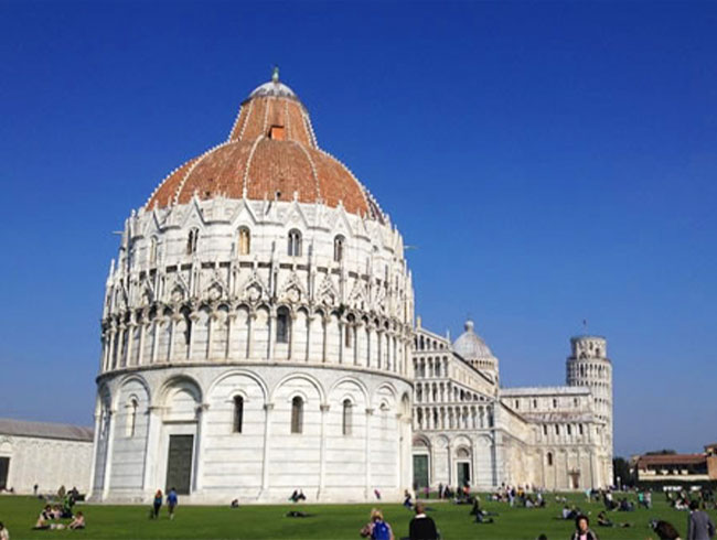 ピサ大型バス駐車場到着 徒歩にてミラコリ広場へ ⚫斜塔(入場) ⚫ドゥオーモ(入場) ◎洗礼堂 ※斜塔、ドゥオーモの入場はお客様のみとなります フリータイム(約30分) |