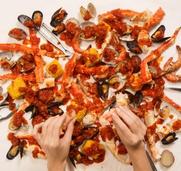 手づかみで豪快に蟹を食す!クラッキンクラブ
