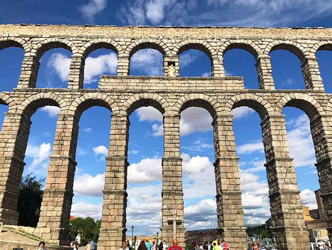 ローマ時代の水道橋自由見学 マヨール広場でフリータイム |