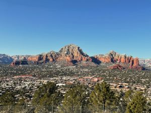 ②セドナの神秘的な雰囲気をまとった赤い岩山と青空、緑豊かな木々の情景の中で、心身ともにリフレッシュ!