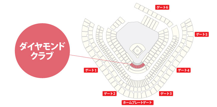 ●バックネット裏DIAMOND CLUB席ならネクストバッターズサークルが良く見えるお席で臨場感満載!