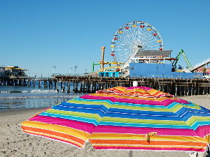 サンタモニカ到着(約30分休憩) ~ルート66の最終地点でもあるサンタモニカは、爽やかな海風感じるマリンタウン~ |