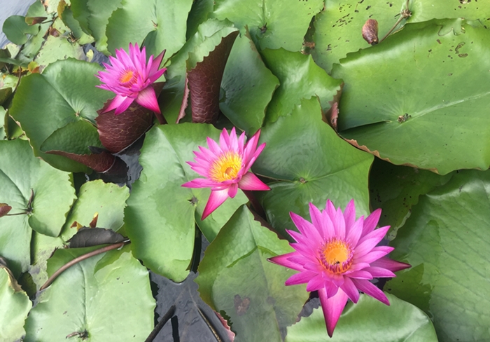 1年中ピンク色の鮮やかな蓮の花が咲く池をお楽しみいただけます。