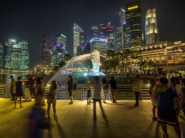 夜はライトアップされ、昼とは違った魅力があります。マリーナベイ・サンズを背景にマーライオンとの写真撮影はマスト。