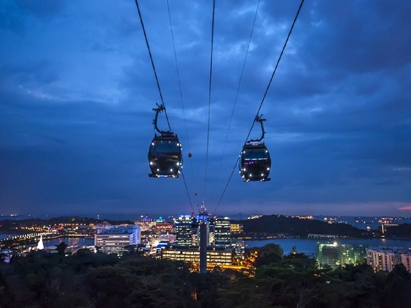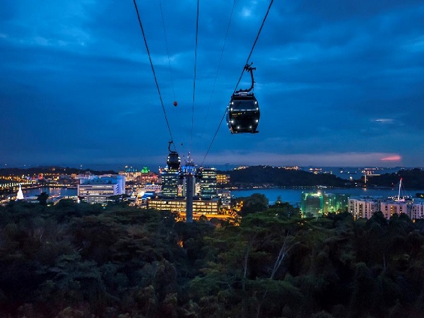 夜のセントーサはとてもロマンチックな雰囲気。セントーサ島へ向かうケーブルカーでは360度の絶景を独り占めすることができます。「ウィングス・オブ・タイム」は光と水が織り成す美しく幻想的なショーです。