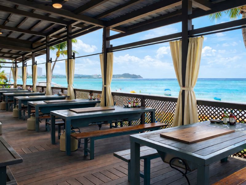 デュシットビーチリゾートグアムのプール階にあるビーチハウスグリルにて、タモンビーチの絶景を眺めながらバーベキューをお楽しみいただけます。バーベキューはご自身で焼くスタイルとなっております。チャイルドシートをご用意していますので、小さなお子様連れでも安心してご利用いただけます。