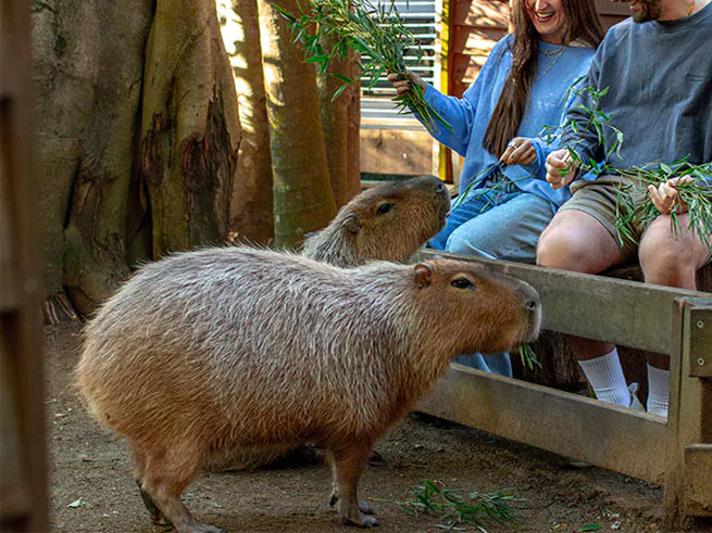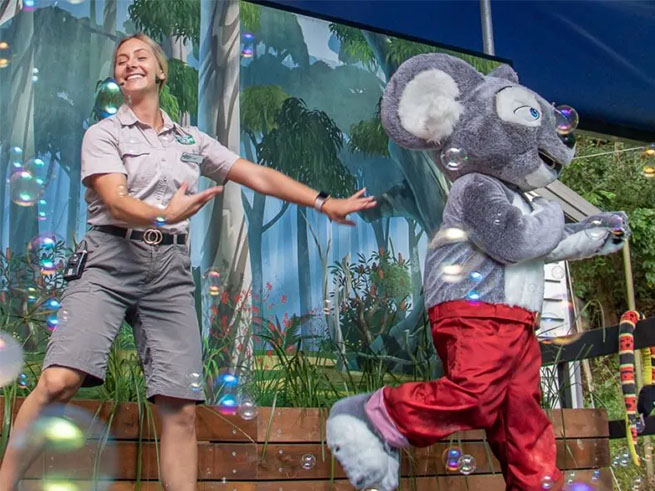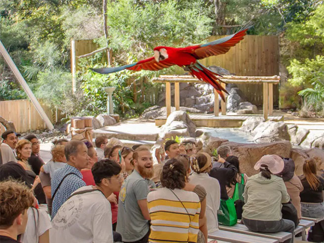 【園内でご覧いただけるショー・スケジュール】 10:00 ペリカン & ウナギの餌付け 10:15 ブリンキービルショーと写真撮影 10:45 ワイルドスカイバードショー 11:30 ワイルドライフホスピタルトーク 11:45 コアラナーサリー飼育員トーク 12:15 カエル研究所-ティンカーフロッグトーク 12:30 ブリンキービルショーと写真撮影 13:00 フロッグラボ シンカーフロッグトーク 14:15 ワイルドスカイバードショー 15:00 アボリジナルカルチャーショー 16:00 ロリキート餌付け *ガイドの案内はございませんので上記のスケジュールに合わせてご自身で移動下さい。 *ショーの時間は予告なしに変更される場合がございますので、詳しくは公式のウェブサイトをご確認下さい。 |