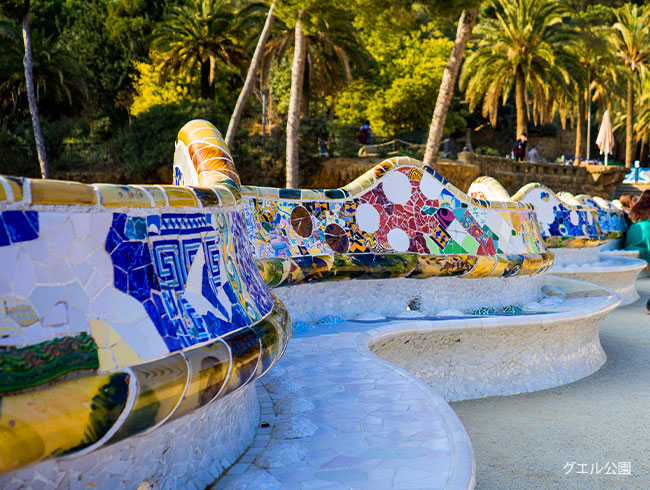 :::: 午前 バルセロナ市内観光 :::: ●世界遺産 グエル公園入場 波のベンチやお菓子の家、大階段のトカゲのオブジェなど、 カラフルな破砕モザイクタイルで彩られた公園へ訪れます ●世界遺産 サグラダファミリア入場 未完の傑作、現在も建設が続く聖家族贖罪教会へ。 教会の全景が見えるフォトスポットなどへもご案内! 地上階の聖堂の他にも、受難の塔エレベーターで塔の上まで昇ります |