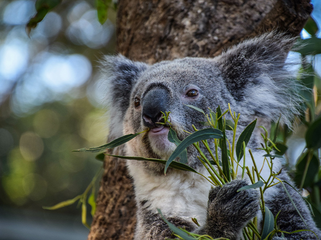 最初に訪れるフェザーデール動物園では、コアラやカンガルーをはじめとするオーストラリア固有の動物たちとふれあえる癒しの時間を満喫🐨
