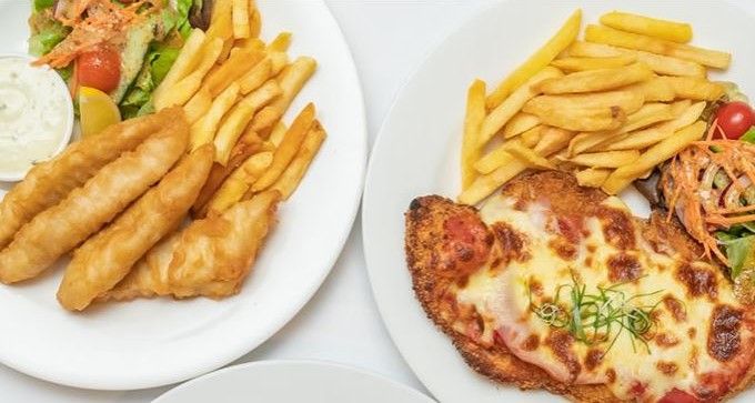 レストランにて夕食 ※選べるオージーディナー! 【夕食メニュー】 大人: ・チキンパルミジャーノ(チキンカツ・トマトソース・チーズ)または フィッシュ&チップス から選択 ・パン ・コーヒー又は紅茶 子供: ・チキンナゲット&チップス または フィッシュ&チップス から選択 ・ジュース |
