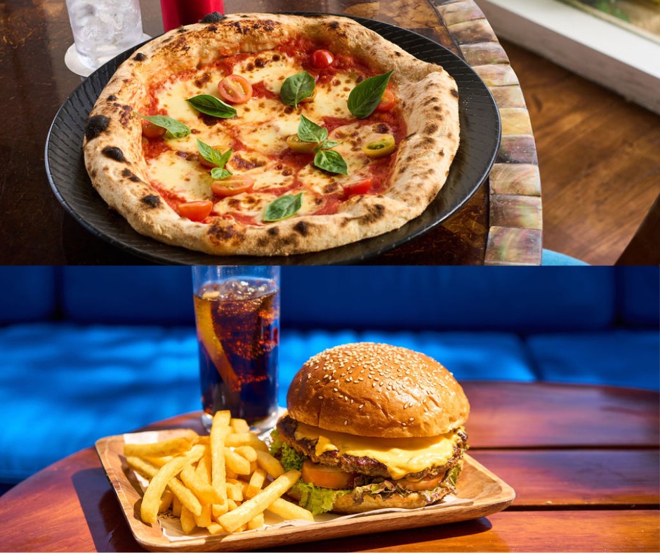 ②洋食セットランチ付き A. クラシックビーフチーズバーガーセット ビーフチーズバーガー+フライドポテト+ソフトドリンク1本 提供場所:Buko Bar(ブコバー)/プールサイドのレストラン (追加でご注文される場合は、お客様ご自身で追加料金をご負担ください) |