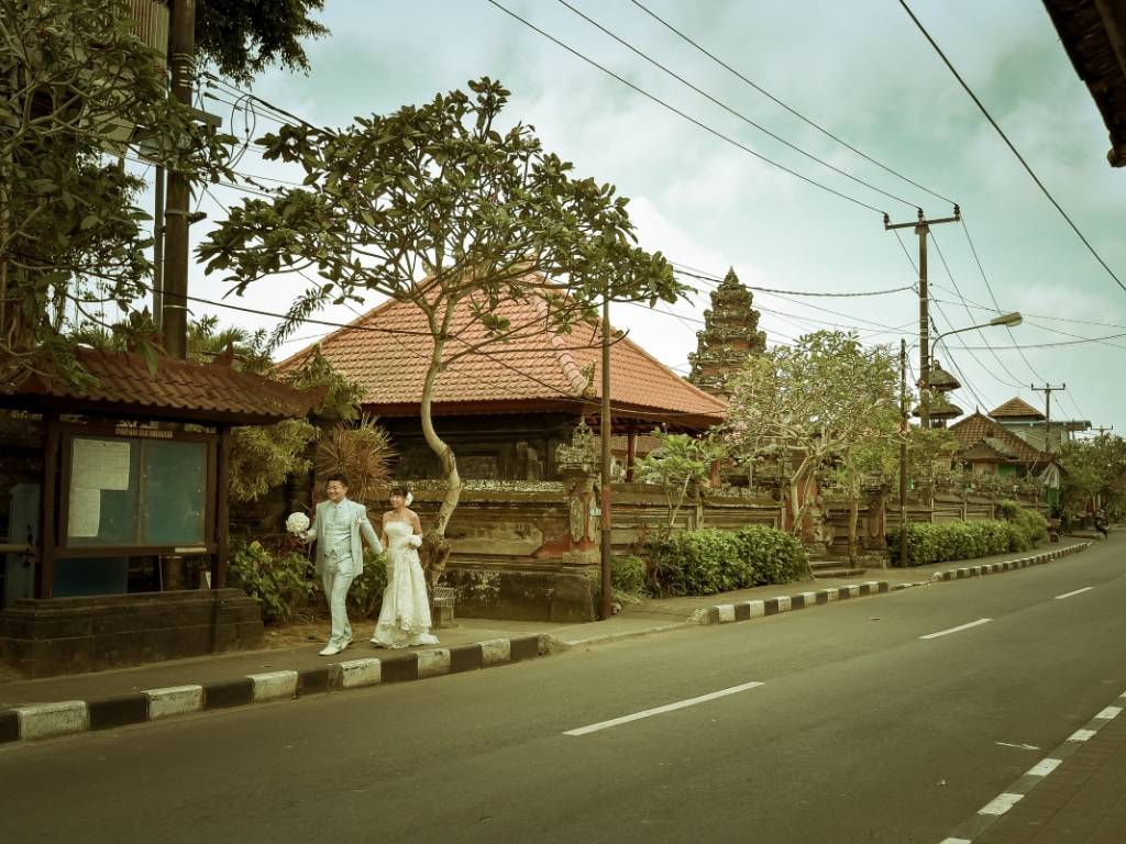 街角の寺院や賑やかな通り、バイクと車が忙しく行き来する風景など、普段着のバリをバックに撮る写真は、異国情緒といっしょにお二人の幸せの瞬間を大切に残します。