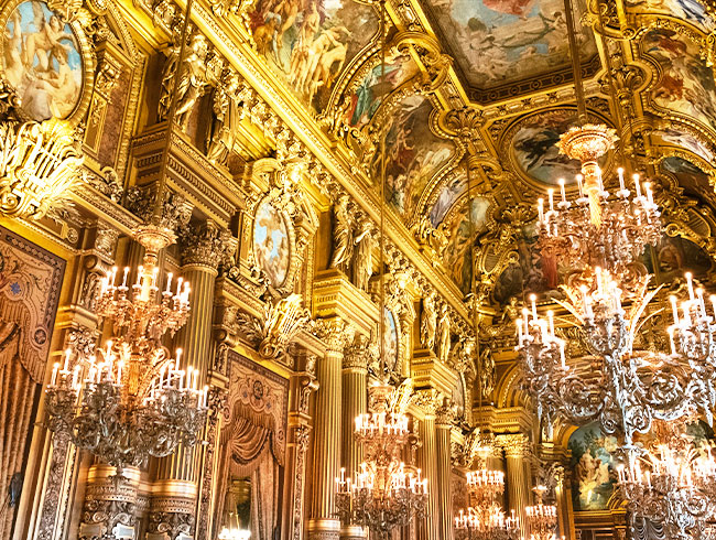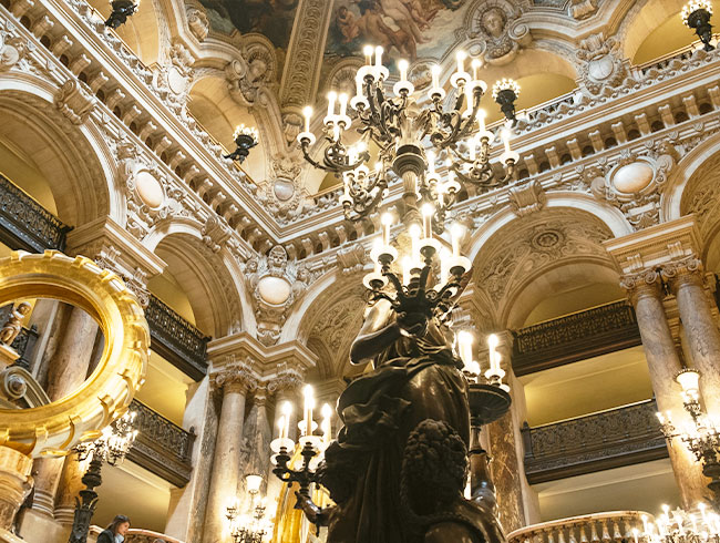 『オペラ座の怪人』の舞台となったオペラ・ガルニエは、バロック建築物そのものの美しさも必見。フランス政府公認ガイドがご案内いたします。