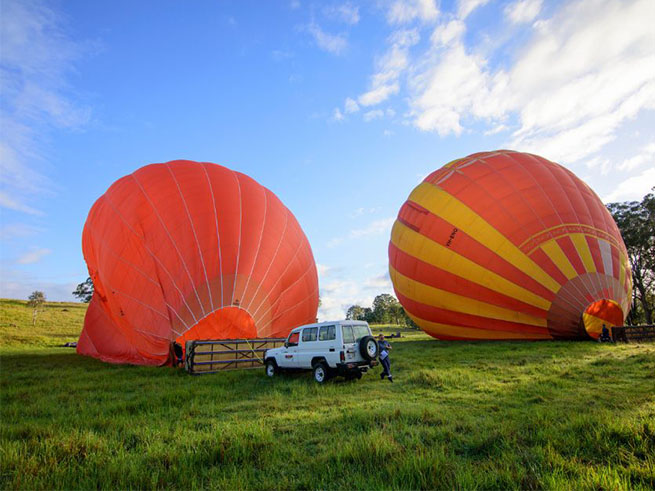 | 6:00頃 | 世界でも有名な飛行地マリーバに到着! 目の前に広がっていくユニークデザイン気球をご堪能ください!その姿はまさに圧巻です!離陸準備が完了したら世界最大級のバスケットに搭乗しテイクオフ!日本では満喫できない広大な大陸をパノラマビューにてお楽しみください。気球飛行は空中散歩です。上空からはオーストラリアの野生動物をご覧いただけます。カンガルーも90%以上の確立でご覧いただくことができます。 離陸する場所は天候や風向きにより毎日異なります。 |